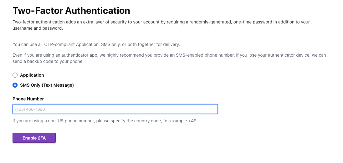 Once 2FA is configured create a new organization.