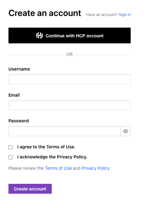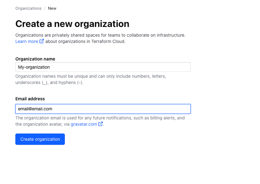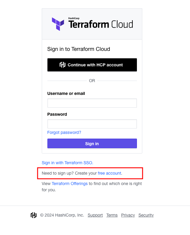 - Create Terraform Cloud account: