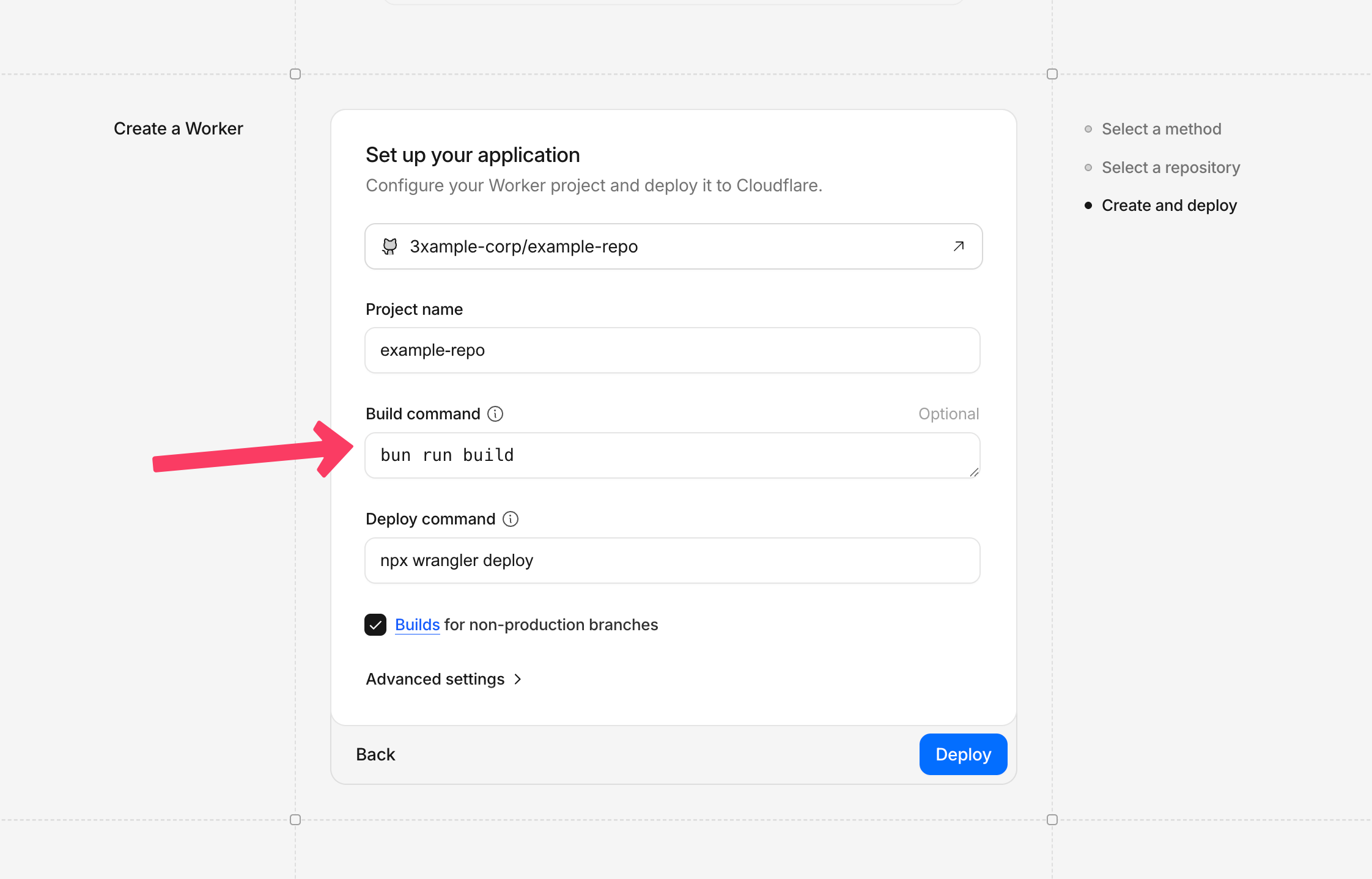 Set project name and build command. You can adjust these later.